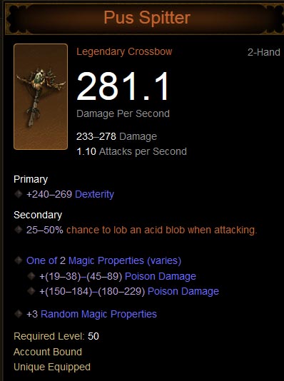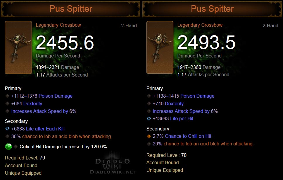 09:10, 2 September 2014 Pus-spitter-db.jpg (file) 55 KB Flux Pus Spitter, a legendary crossbow. category: Weapons category: Legendary Crossbows category: Crossbows category: Demon Hunter 1