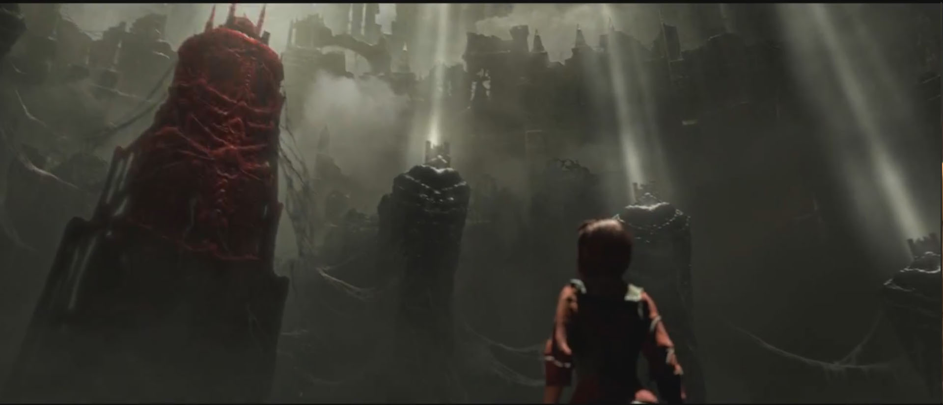 Thrones in Hell. The empty red one is presumed to belong to Diablo. A still from The Black Soulstone cinematic.