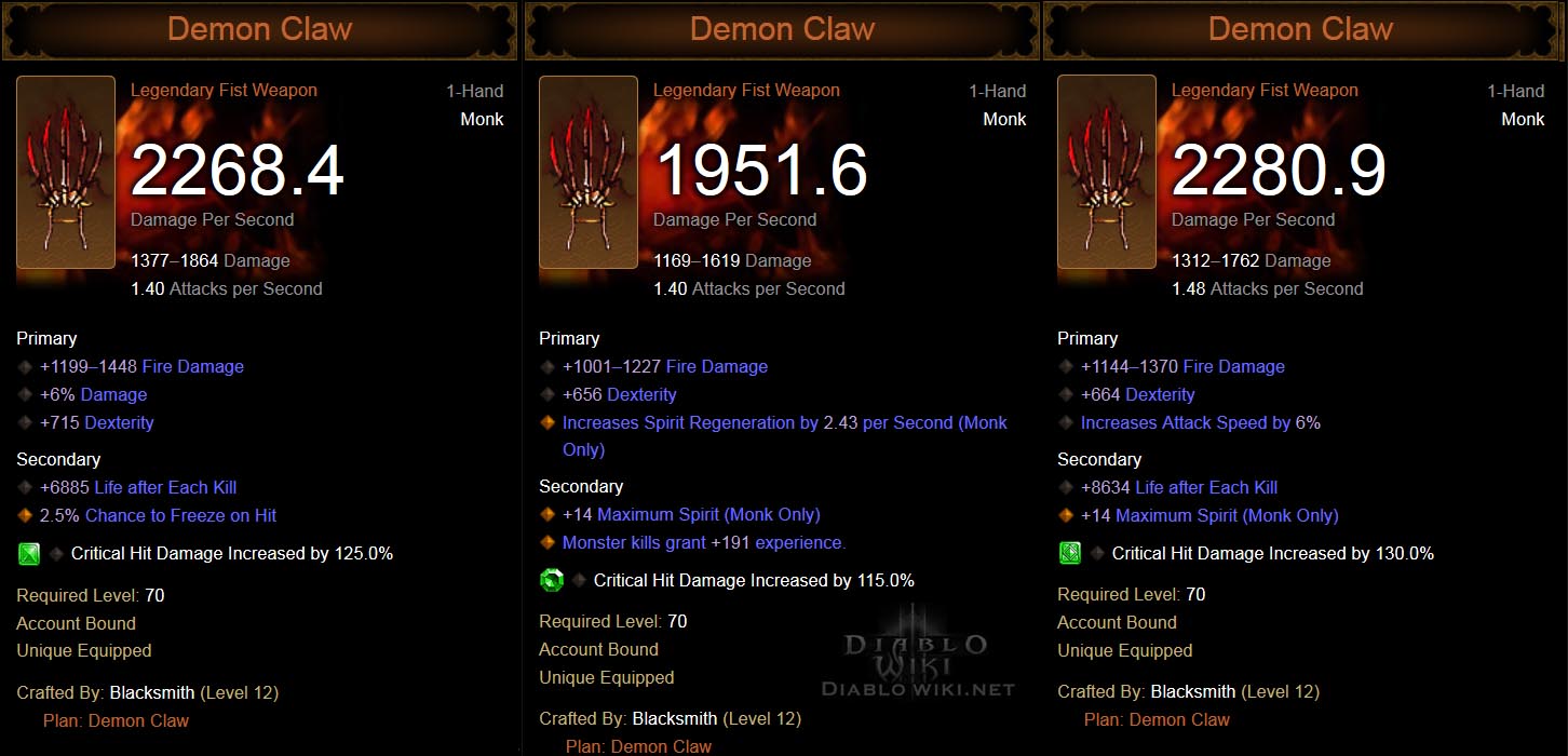 Demon Claw is a crafted legendary Fist.