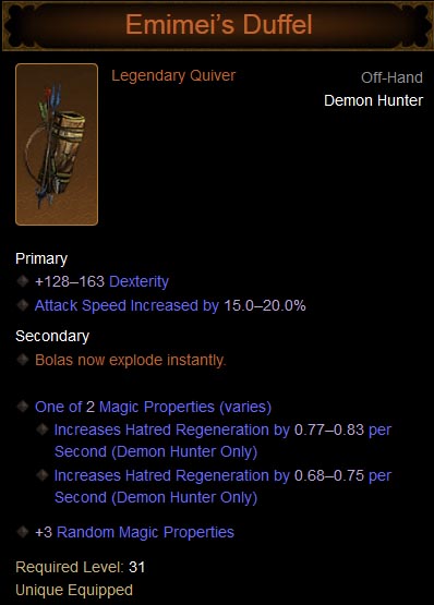 Emimei's Duffel is a legendary quiver. Demon Hunter only.