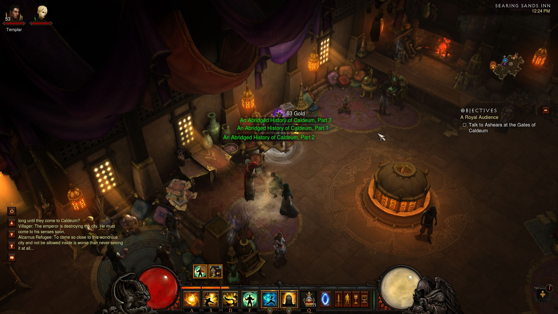 A Monk in the Searing Sands Inn, perusing the Historian of Caldeum achievement.