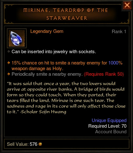 The Mirinae, Teardrop of the Starweaver, a Legendary Gem seen on the PTR during Patch 2.1 testing.