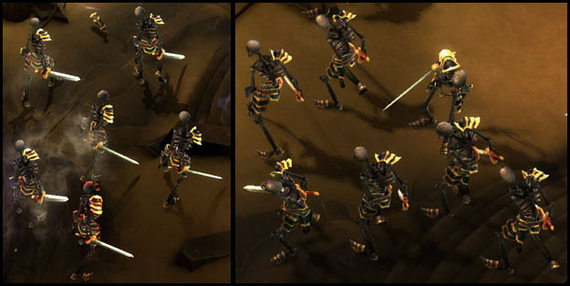 Bone Warriors attack in a pack. Images taken from 2 different screenshots.